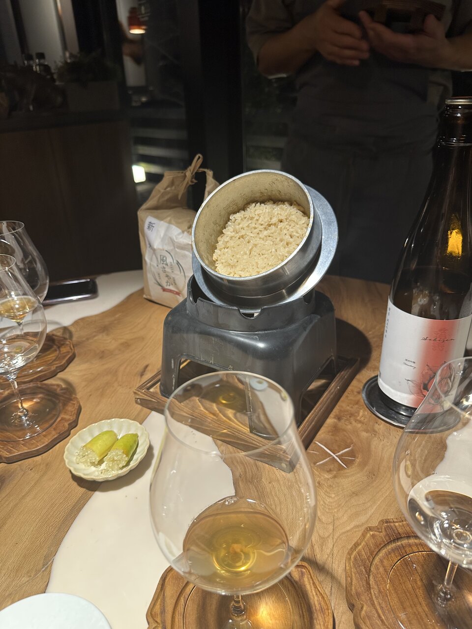 私たちはアルコールのペアリングをお願いしていましたが、戸枝シェフのつくるノンアルコールペアリングにも興味があり、当日「ペアリング代を追加して、ノンアルコールも同時に出していただけますか?」と伺ってみたところ、快く「大丈夫ですよ」とのこと。