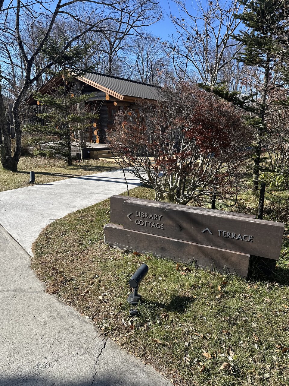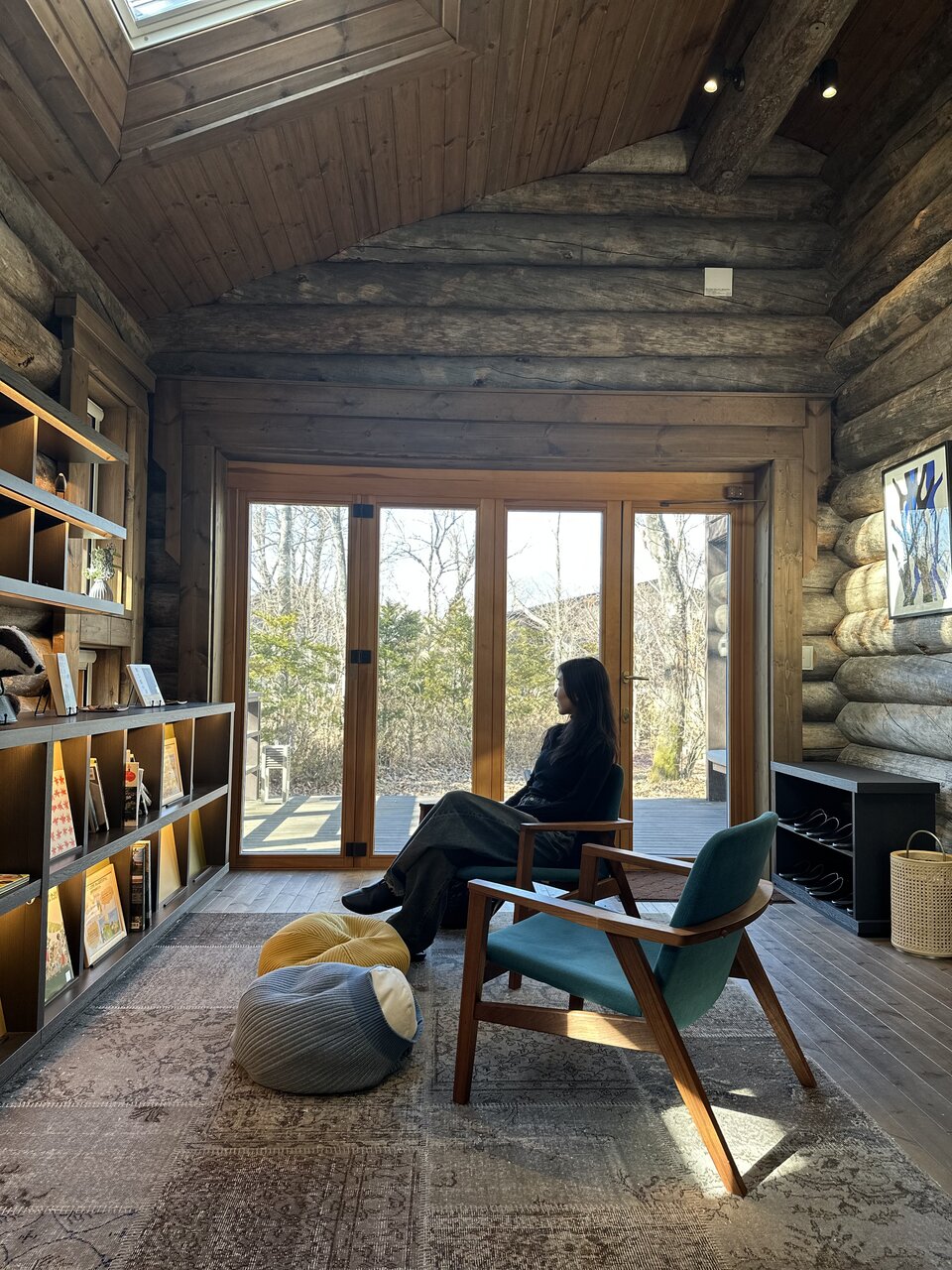ログハウスの一棟がライブラリーとして開放されていることを知り、思いがけない素敵な空間にも出会えました。