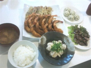 →cooking完了📷 miku Diary 作成日: 2009.12.1 エビフライちくわの天ぷら小籠包ココロの塩焼き白子ポン酢味噌汁ご飯 作ったよ~ぉう Please→Yonda!・comment (C)M!KULOG