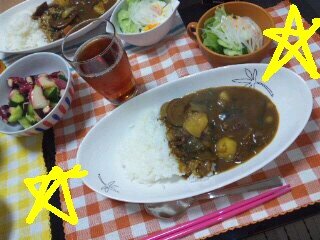 晩御飯(^3^)/写 miki Diary 作成日: 2010.4.6 うにゃーー 今日わ仕事帰りにななちゃんと、ななパパの誕生日プレゼント買いに行ってきましたぁ んで、第二のに帰宅です! あ、第二のってゆーのわあゆ&きょろちゃんの愛の巣でーしゅ 今日の晩御飯わカレーでひた ほうれん草、なすび入ってておいしかったぁ そういえば合鍵もらった(笑) いぇい 今わロンハーみながらまったり中でしゅ