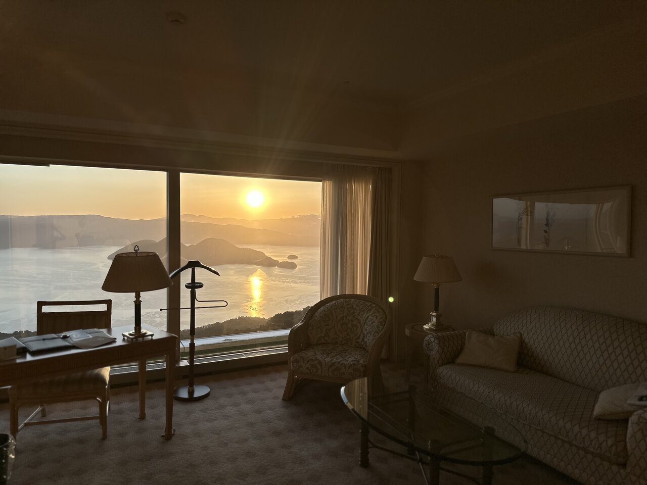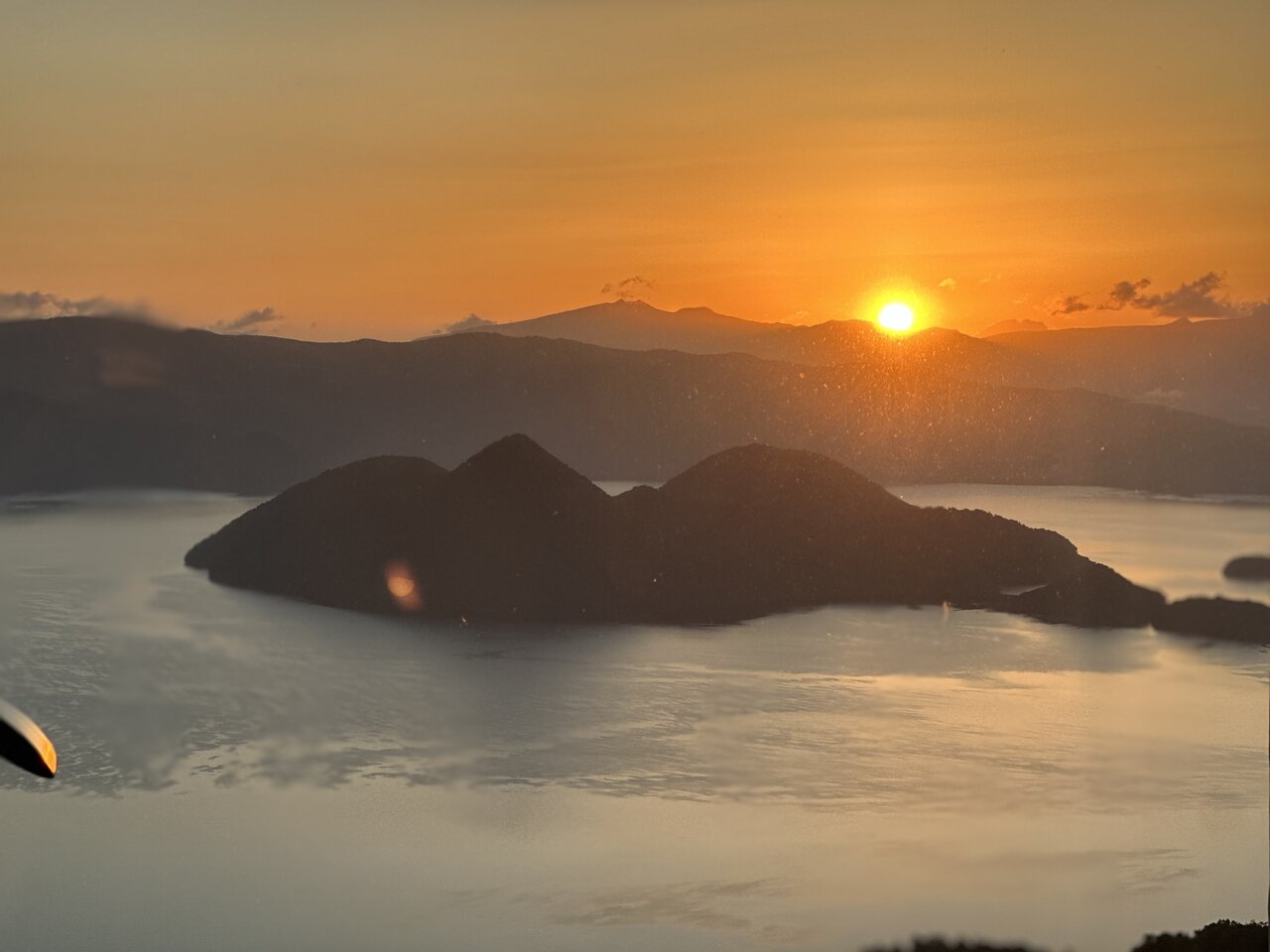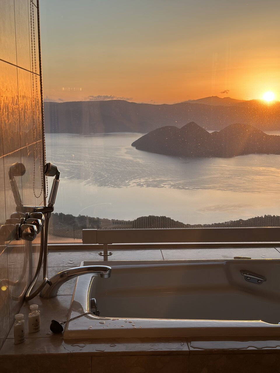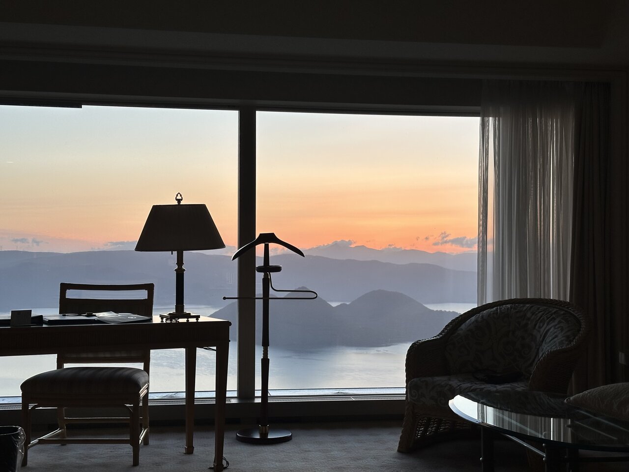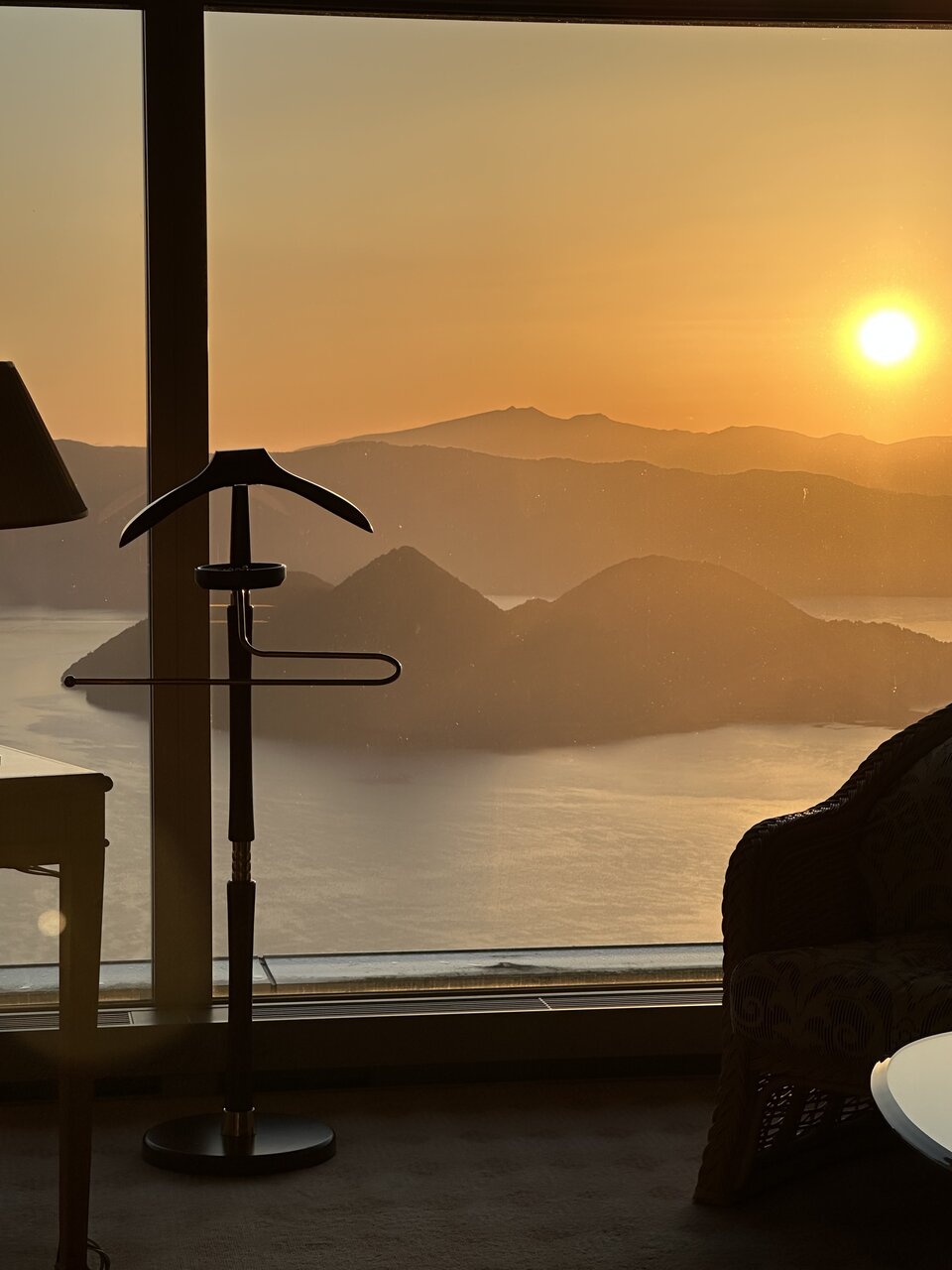 ベッドやリビングから眺める洞爺湖の朝日は、ただ美しいだけではなく、心の奥まで穏やかに満たしてくれる神秘的な光景でした。