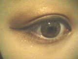 で、濃ぃめのブラウンシャドーで目尻の方に濃く塗ってぃきます。