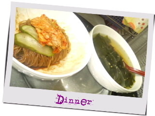 dinnerなう。 miku Diary 作成日: 2010.6.28 ビビン麺+わかめスープ ダイエット中ゃしミニにしたぁ(^O^)/ そば粉ゃからカロリー低いで!って言ゎれたけど‥ 本間かょ(-_-) ょっしゃ!ごちそぅさまでした(^O^)