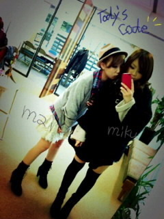 maiちゃんと今日のコーデ miku Diary 作成日: 2010.12.21 今日くつ一緒やった(^o^) いまmaiちゃん解散してAKIちゃんと新幹線乗るとこー♪ 今日も楽しかった 次ゎ年明け!新年会も楽しみ bye..