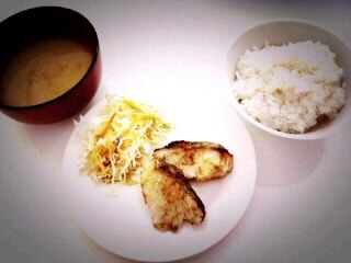 # おうちランチ miku Diary 作成日: 2011.1.29 ご飯ゎ糸こんにゃくと混ぜてたいてるから、カロリー低め♪ そしてうまい 白身魚ゎ本間ゎバターで焼きたかったけど塩焼きにしたっ あとサラダと味噌汁 お腹いーっぱい!ごちそうさまでした(^o^)/