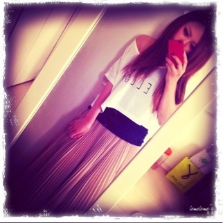 着回しこーで3 miku Diary 作成日: 2011.5.21 T/SH:DELYLE みくの大好きなピンクのロンスカとネイビーのキャミを合わせて(^_^) 可愛いっ 本間にこのゆるい感じがめっちゃ好き!合わせやすいからなんぼでも着回しきく