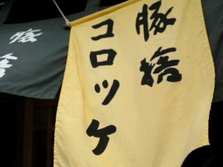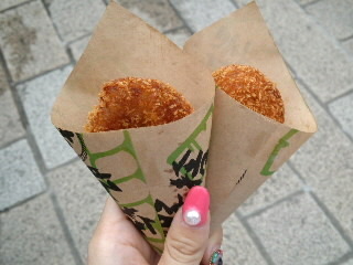 横丁名物 💓 miku Diary 作成日: 2011.7.3 @豚捨コロッケ 行列やった;) 甘くておいしかったぁーうまい!やばい! なんか久々に本間においしいコロッケ食べたぁ 今ゎカフェ入って休憩中♪