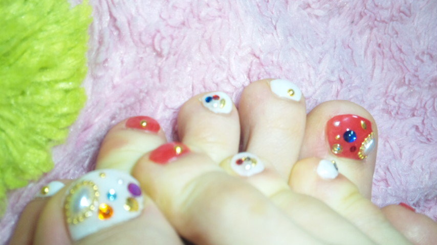 (-.-;) miki Diary 作成日: 2011.7.10 質問にあった、foot nailは8400円位でした ぶっさいくな指と爪(-.-;) 親指のネイルちゃんのせいで昨日と今日ストッキングが破れました。。 (-.-;) 今日は、本当に頑張った!