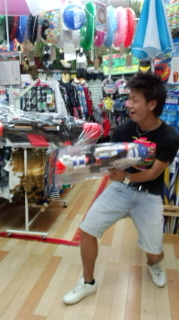 「こーきが見上げるほどデカイ水鉄砲ドンキにうってるよーー(笑)」