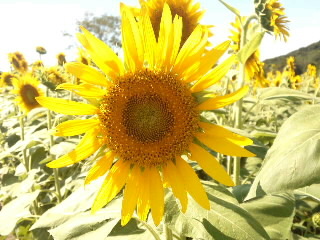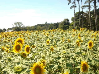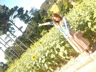 ひまわり畑。 miku Diary 作成日: 2011.8.7 ワタシの大好きなひまわりに囲まれてますっ うん。幸せ ただ一つ言いたい。。 暑い!!! なに?この暑さ :^cまわりの人たちもみんなバテてます (笑) 汗だく 淡路の花火大会までまだまだや ! キレイなんかなぁ ?