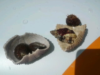 海の上のプレゼント miku Diary 作成日: 2011.8.15 (笑) なんか色々見せにくんねん :^) そしてまた去って行く。。 ただの貝殻やと思ったら、中からヤドカリ出て来てびっくりして落としそうなった ;;; あとゎカニとかフグとか魚とか。。 さて。今日ゎ何しよぅ ?;D