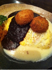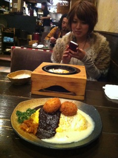 しほを連れて。。 miku Diary 作成日: 2012.1.18 @ばさら占い終わりに来たっ今日ゎオムライスにしたぁーカレーと、豆乳クリームっ最近好きなコロ助もトッピング(^ ^)しほゎ石焼きおいしい。