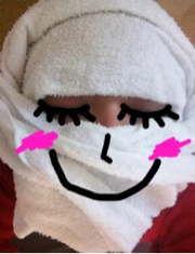 1.ホットタオルを顔の上に置いて、毛穴を広げます。
