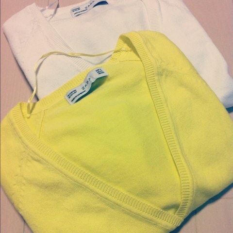黄色のカーディガン。