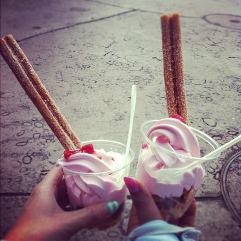 これがヤバイっ! miku Diary 作成日: 2012.4.9 ミッキーの形したチュロスが入ったアイス!これおいしい!てか、可愛いっ今みくたちゎ、もぉすでにダレてしまってベンチで今からなにするかを話し合ってます。(笑)