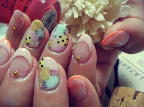 NEW NAIL. miku Diary 作成日: 2012.5.13 Coccoちゃんとこからもらいましたっパッチワークnail.可愛いでしょっCoccoちゃんといつも爆笑しながらnailしてもらってるあの時間が大好きっいつもありがとぉございます(^ー^)ノ