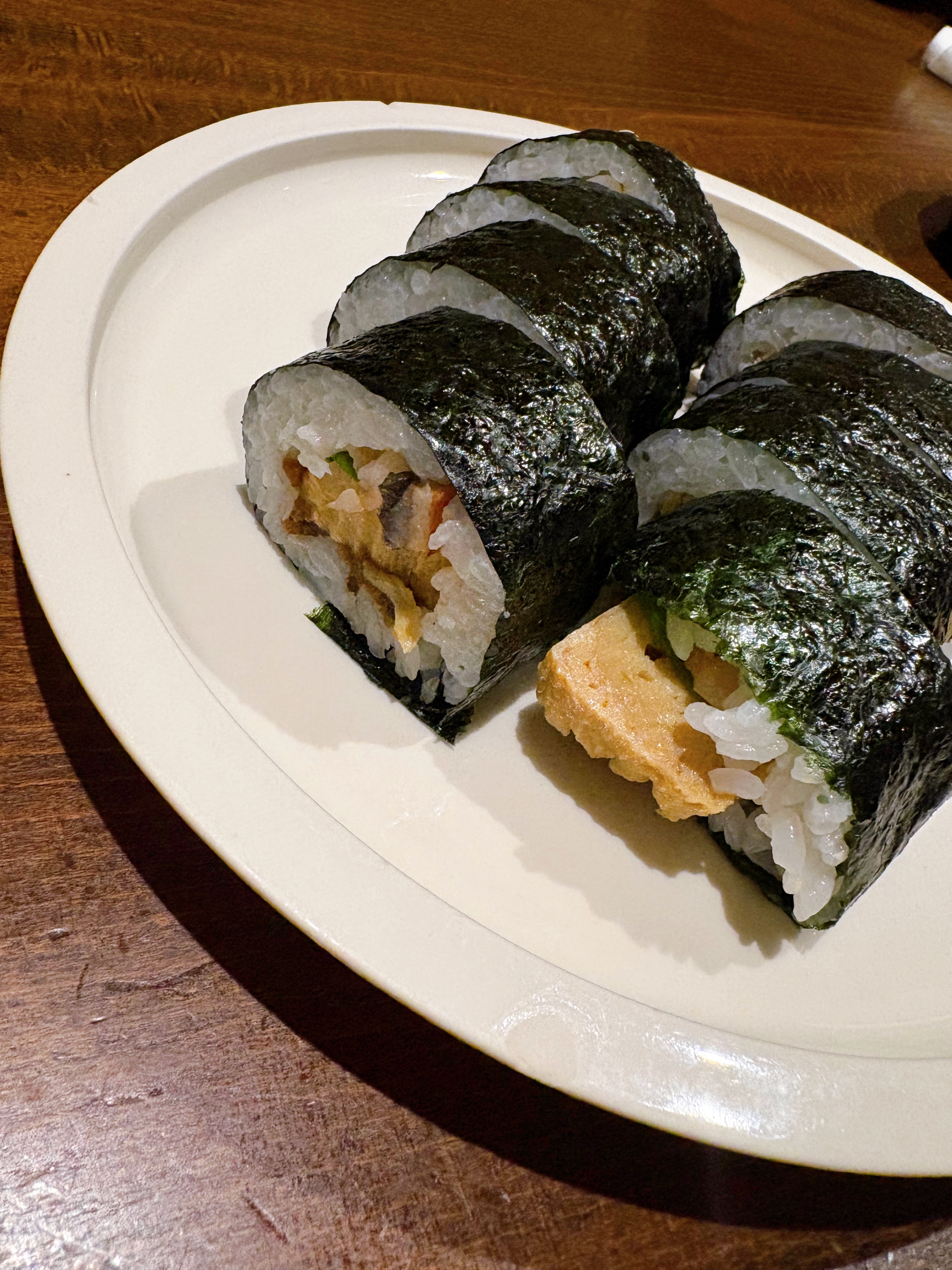 お昼からお刺身も太巻きもだし巻き卵も食べて