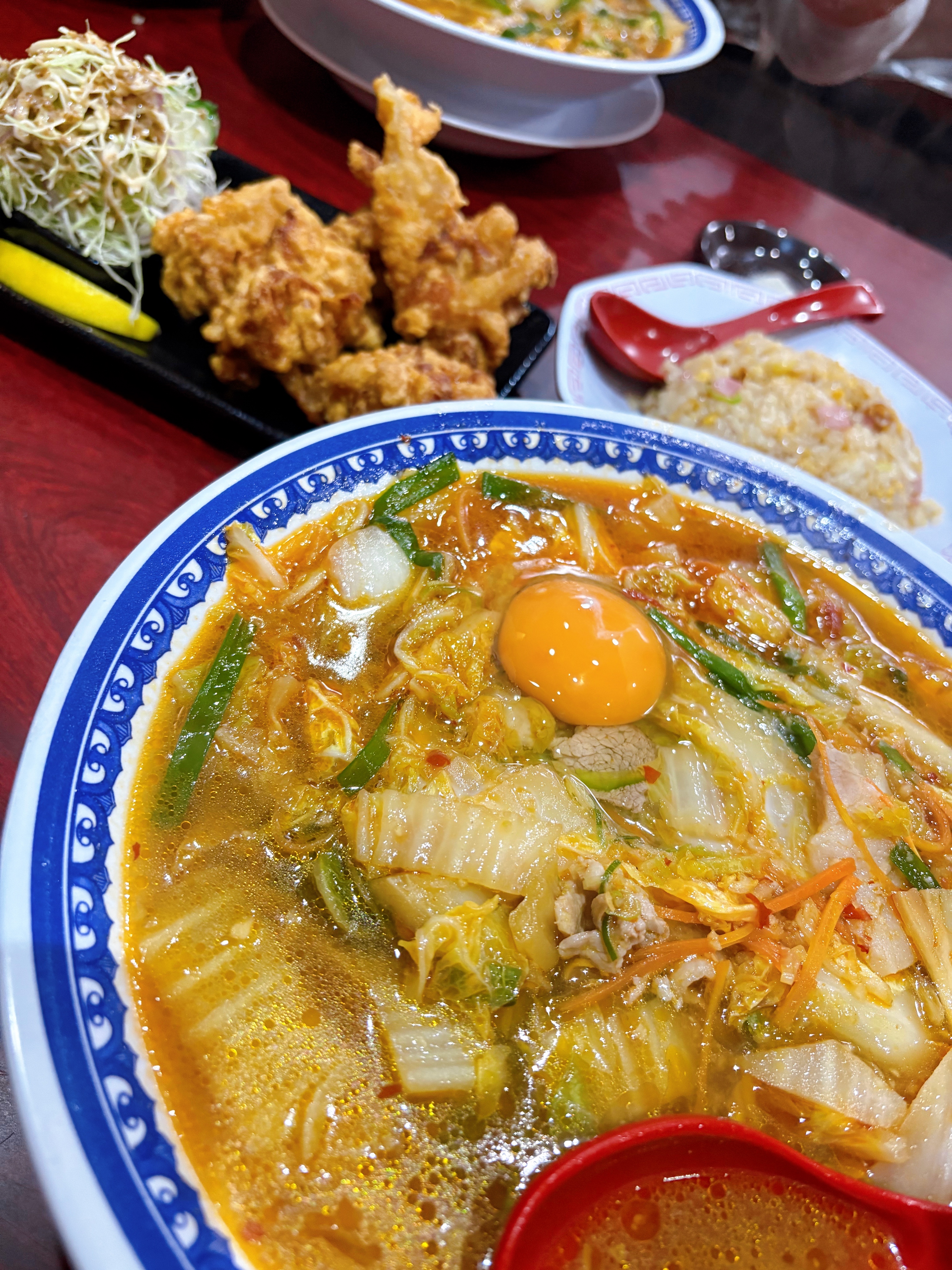唐揚げに炒飯に大盛りラーメンに盛りだくさん