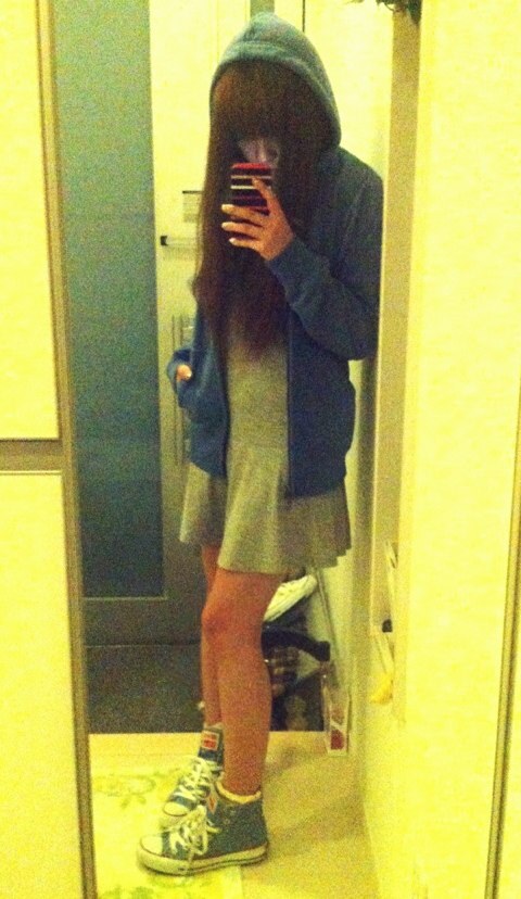 この前UNIQLOでGETしたグレーのチュニックをワンピースにして、ブルーのパーカーと合わせたコンバースちゃん。