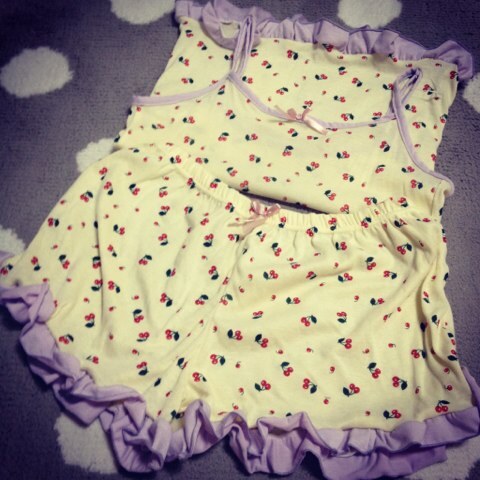 room wear miki Diary 作成日: 2012.7.10 今日買った、room wearこーゆー、キャミにパンツの部屋着が過ごしやすいこれ、本当安すぎたから買ったんよーー♡♡しかも、チェリー柄で可愛い*何円だったと思う?525円w洗ったら着るーー