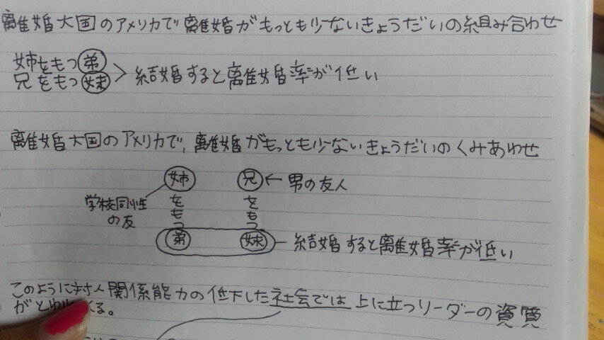 以外に面白い AYA..E Diary 作成日: 2012.7.21 離婚大国のアメリカで、離婚がもっとも少ない兄弟の組み合わせ 姉をもつ弟と 兄をもつ妹 が結婚すると離婚率がすくないんだって〜 おっとひいくん\(^o^)/(笑) 男しかおらんやんけ(笑) い、いいんだ 7年間うちですんでたら姉の扱いも、女がどんなんなのかも分かってるはずだ← 離婚やら子育てやら どんな大学じゃい\(^o^)/\(^o^)/