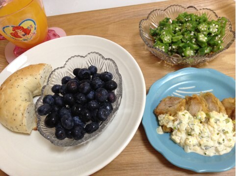 お寝坊ちゃん♡ miki Diary 作成日: 2012.7.26 今日、目が覚めたの5時早起きの予定だったけどお昼に変更になったから寝たり起きたり。。そしたら、寝坊したーー。・°°・(>_<)・°°・。寝坊しても、ちゃっかりお昼ご飯食べていってくる♡♡オレンジジュースベーグル半分おくら唐揚げ(タルタルソースも手作り♡)ブルーベリー変な組み合わせ(´Д` )盛り付けのセンスなし(´Д` )日焼けどめだけ塗って柄にもなくサングラスwサングラスでかいw虫みたい(´Д` )