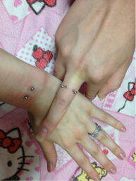 ってあけたのが指っ指輪みたいできゃわたん早く穴が安定して欲しいなっリストね開けるときゎ多少痛かったけどあけてからゎ痛くないよでもねひっかかったりするとめっちゃ痛いーっ(´;ω;`)××ちいめろ