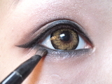 スモーキーmake 03 Takayo Diary 作成日: 2012.8.29 06 下のラインをひきます♪今回は目の粘膜にガッツリとブラックペンシルでラインを入れます 07 ラインをひいたらブラックシャドウでラインをぼかす。 08 ビューラー→マスカラしたら上下ツケマを装着(^◇^)┛そしたら完成だよ(*^o^*) 仕上げに口元の色を赤などにしたらもっと可愛いと思います(*^o^*)おまけにSexyだしね。。。(^_^)v スモーキーmakeの紹介でした