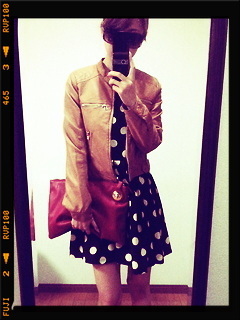 レザーJK code特集04 Takayo Diary 作成日: 2012.9.17 続いてはドット柄ワンピっと 合わせてみたよん♪〜θ(^0^ ) ドット柄可愛いすぎる!(^_^)v中に可愛い感じのワンピや真っ白なワンピと合わせるのも個人的好きだな♪〜θ(^0^ ) 差し色に赤のクラッチ(^_^)v赤の小物がなくても唇を赤LIPにしても可愛い♪” 参考になるか分からないけど、紹介させて頂きました(*^o^*)♪