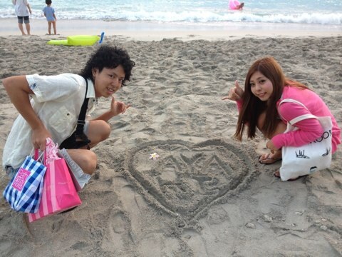 買物おわってサンセットみにビーチ(⌒▽⌒)