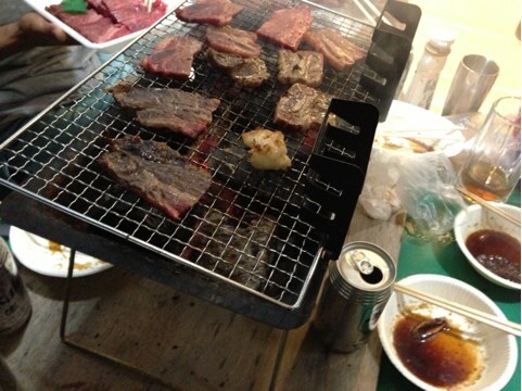 家で多勢でBBQナウ。