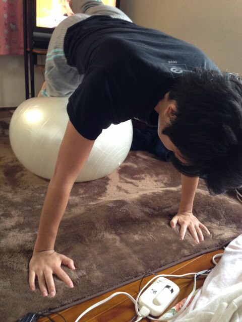 昼わひーくんとドンキでかったバランスボールでストレッチ
