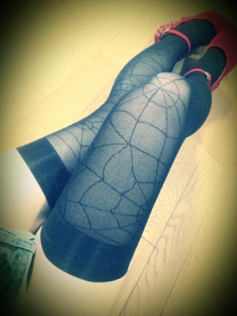 スパイダー柄のニーハイ