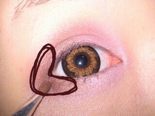 バレンタインeyemake 03 Takayo Diary 作成日: 2013.2.7 03 目尻側だけにブラウンシャドウを入れてぼかす。下瞼の目尻側にもブラウンシャドウを入れライン変わりにしていくよ♪(^^)上の目尻側に入れたブラウンっと下の目尻側に入れたブラウンがくの字になるように重ねながら入れていくよ♪そしたら全体的にぼかします。太めのアイシャドウブラシを使ってぼかすと綺麗にぼかせるからオススメだよ(ノ´∀`*)