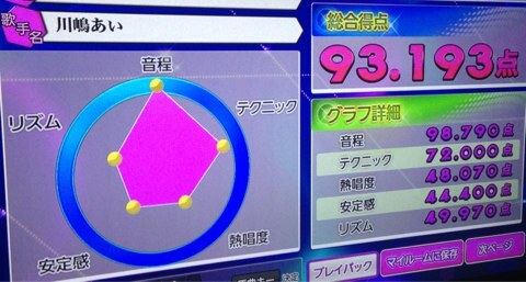 精密採点で90越えると嬉しいー(^ー゜)♪♪