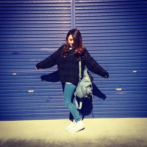 コーデもう1枚 miku Diary 作成日: 2013.2.11 この青いガレージが可愛かった。きのうのパンツとリュックも青だったからいーカンジ♪可愛いね、Blue写メもう1枚あったから載せてみたそれだけ