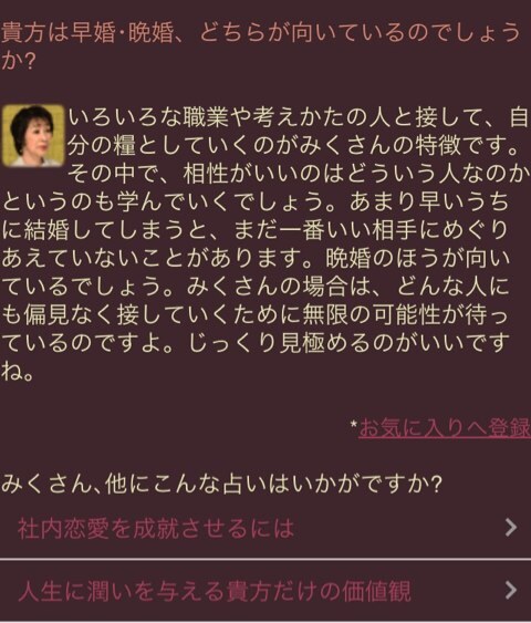 晩婚のが向いてるってさ