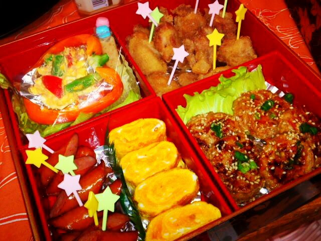 たもちゃん弁当 02 Takayo Diary 作成日: 2013.4.20 唐揚げつくね風豚ハンバーグ玉子焼きウィンナーパプリカとアスパラのたまごサラダ写メとってないけど、エビマヨも作ったよ(*´ω`*)勿論!タレから全部手作りしやした(* ̄∇ ̄)ノ冷凍食品入ってないわよ♪なかなかじゃない?(´・ω・`)まぁ♪見た目適当ですきろ(笑)