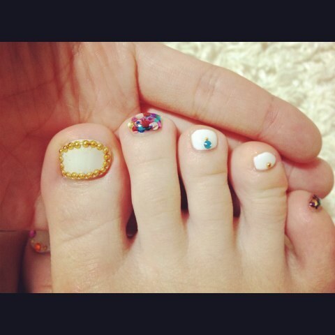 foot miki Diary 作成日: 2013.5.21 今日も一日お疲れ様でした昨日の足元。。♡自分でフットネイル塗ったから汚い(´Д` )w去年、よっぴぃにしてもらった可愛すぎるfoot nail今年はどんなのにしよっかな♡♡さ!お化粧直して色々やってこよ♡♡