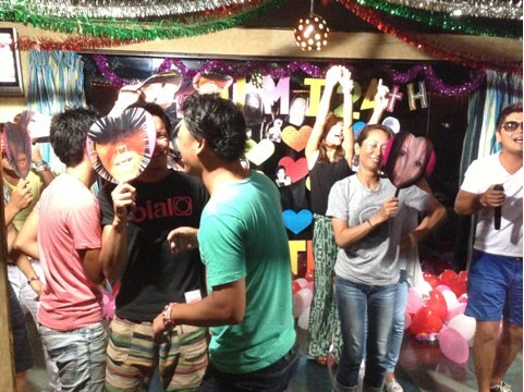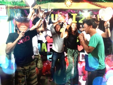 うちらわ皆リラックス集合して、うちわとクラッカーとケーキと照明、音響、カメラ、ムービー部隊に分かれて待ち構える