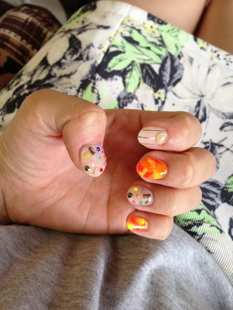 hand nail * miki Diary 作成日: 2013.8.10 お盆休みだから、、やりたいものを詰め込んだnailになりましたーー( Д ) ゚ ゚( Д ) ゚ ゚( Д ) ゚ ゚可愛いすぎて、、見るばっかりしてるお米研ぐ時、水にぬれてる爪がキラキラしてて可愛いすぎたよっぴぃいつも可愛くしてくれてありがとう(;_;)(;_;)http://www.dclog.jp/yociqo/