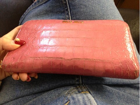 お財布も、、 miki Diary 作成日: 2013.10.12 お茶の被害に。・゜・(ノД`)・゜・。そろそろこのお財布もかえどき!miu miuのクロコダイルのやつってすぐボロボロになるまだ二年しか使ってないのにーー(;_;)