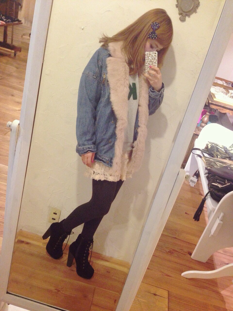 デニムジャケット miki Diary 作成日: 2013.12.1 最近、お店ではLily Brownも取り扱っててファーカラーデニムジャケット買ってしまった、、♡♡明日着ようかなぁ(((o(*゚▽゚*)o)))さっ!!甘いもの求めて外出します♡←でぶ。