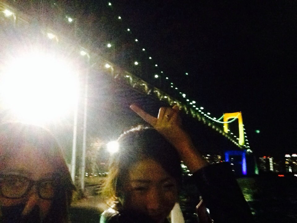 東京観光 miku Diary 作成日: 2013.12.7 レインボーブリッジ下からみあげてきた♡はじめての体験♡めっちゃキレイやったしなんか新鮮だった♡それから色んなとこ移動した♡今からごはん〜♡♡