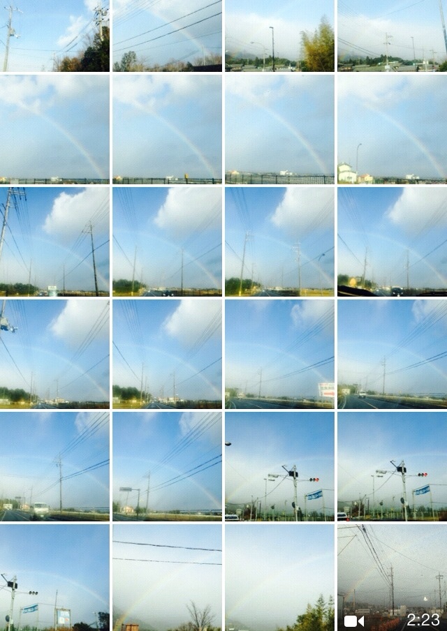 Rainbow🌈 miku Diary 作成日: 2014.1.5 今日、帰りに虹が出てました♡途切れ途切れだったのが、キレイに繋がり、くっきりとした1本の虹に。。><♡久々にこんなキレイな虹みたっ♡感動しました。この風景が、また虹にピッタリ♡そして、突然消えてしまいました><なんかショックだった〜カメラロールが虹だらけになっちゃいましたっ♡ちゃんちゃん♫