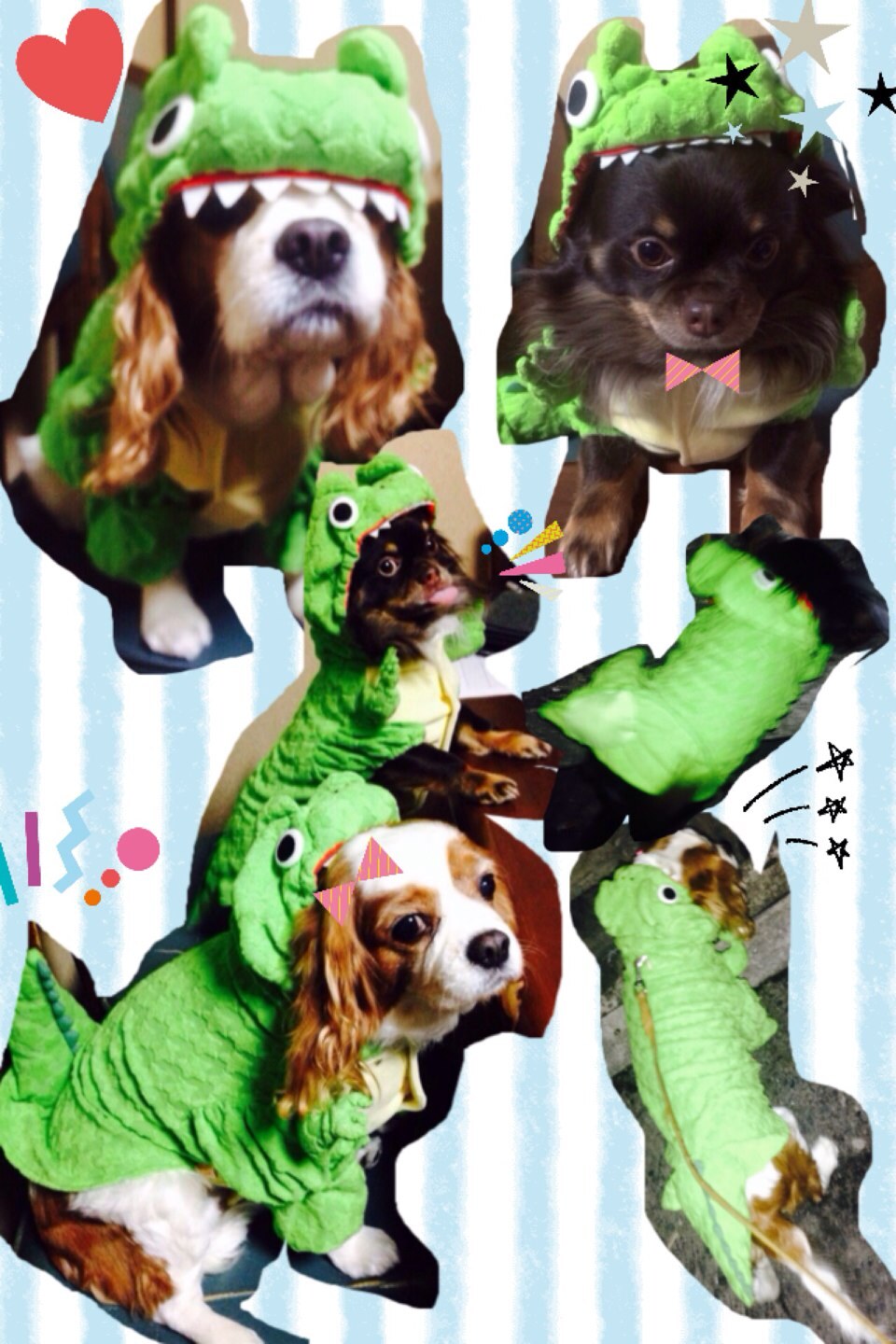 so cuuute..♡ miku Diary 作成日: 2014.1.24 今日、ワンちゃんたちに恐竜のお洋服を買ってあげたの♡可愛いでしょ〜\(^o^)/めちゃくちゃ似合ってる♡フードをかぶせたら、前が見えなくなってフラフラ歩いてた♡もぉ、たまらなく可愛い♡ヤバイ、ワンちゃんのお洋服集めにハマってしまいそーな予感。自分が飼ってるわけじゃないのにね。。笑あー。可愛い。><♡