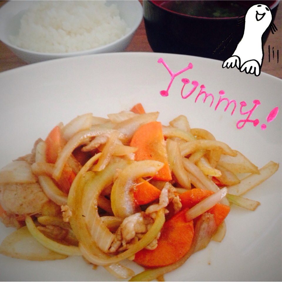 昼夜兼用ごはん。 miku Diary 作成日: 2014.2.24 冷蔵庫にあった、人参と、玉ねぎー!!を、炒めただけ!!!♡笑お肉と一緒に。。お昼食べた時間遅かったから夜と兼用んなっちゃった!!!おいしかった♡ごちそうさまでした。