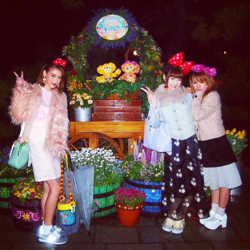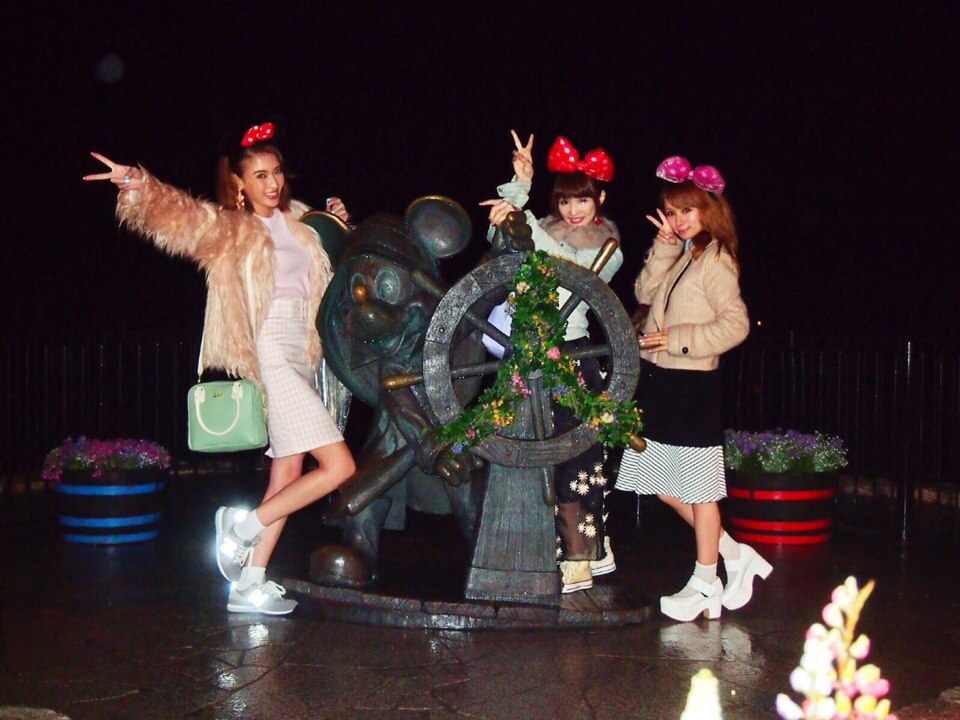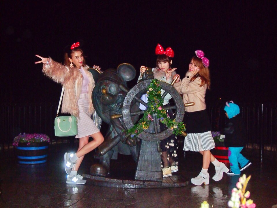 雨でミッキーミニー達は出歩いてなかったから、ここで写真を撮れて満足〜\(//∇//)\