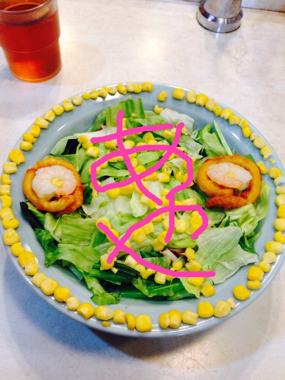 『このコーン並べたりこのサラダつくるのに一時間かかったんだよ!笑』