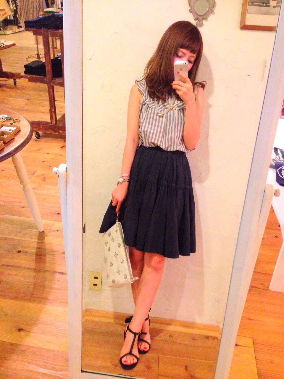 0718♡code miki Diary 作成日: 2014.7.19 good morning昨日はいつもより早くベッドに入ったのに携帯触ってたら寝るの遅くなったぁ><昨日のcoordinate脚が細く撮れたので2枚でお届けしまーーす☆*:.。. o(≧▽≦)o .。.:*☆笑出勤まで少し時間あるからスタバスルーしよっと٩(◜ᴗ◝ )۶